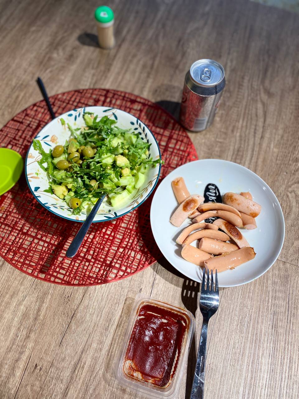 Салатик с авокадо 🥑и сосиски из индейки с кетчупом 🔥😍. Главное низкоуглеводно!