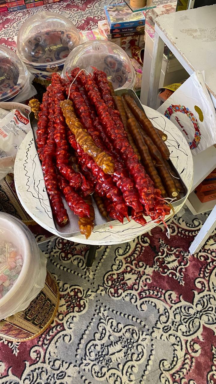 Внезапно и тут я начала гуглить состав чурчхелы. Оказывается кроме сока там еще и мука Я не знала, подколола чисто на гранатовый сок